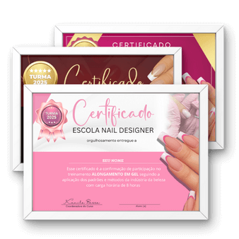 Ao concluir nosso curso online de alongamento de unhas, você não apenas adquire novas habilidades, mas também recebe 25 Certificados de Conclusão, testemunhando seu comprometimento e dedicação.